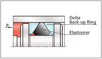 Turcon® Wedgpak® consists of a proprietary triangular elastomer element supported by two delta shaped Back-up Rings.The delta-shaped Back-up Rings of Turcon® Wedgpak® prevent the elastomer element from spiraling or rolling under severe working conditions.