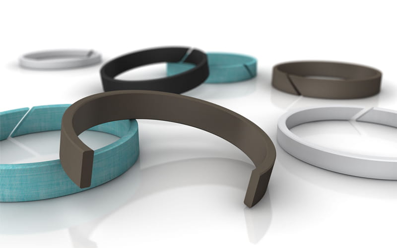 The purpose of polymer bearings is to guide the piston and rod within cylindrical applications, absorbing any transverse forces which may occur. They prevent metal-to-metal contact, optimizing the performance of the sealing system.