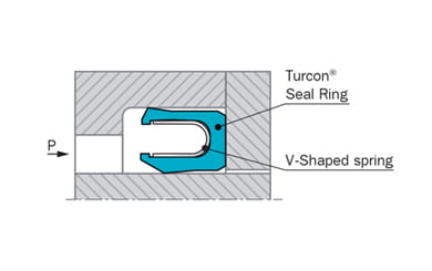 Turcon® Variseal® M2 is a single acting seal consisting of a U-shaped jacket and a V-shaped corrosion resistant spring. Turcon® Variseal® M2 has an asymmetric seal profile. The heavy profile of its dynamic lip with an optimized front angle offers good leakage control, reduced friction and long service life.