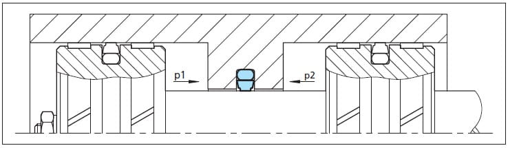 The edge angle created by the cross-sectional form of Turcon® Glyd Ring® T permits an additional degree of freedom of movement and enables slight tilting of the seal. The maximum compression is thus always shifted towards the area of the seal edge directly exposed to the pressure. On the lower-pressure edge of the seal, the Glyd Ring® T exhibits only zones with neutral strains without compressive or shearing loads. This effectively reduces the danger of gap extrusion.